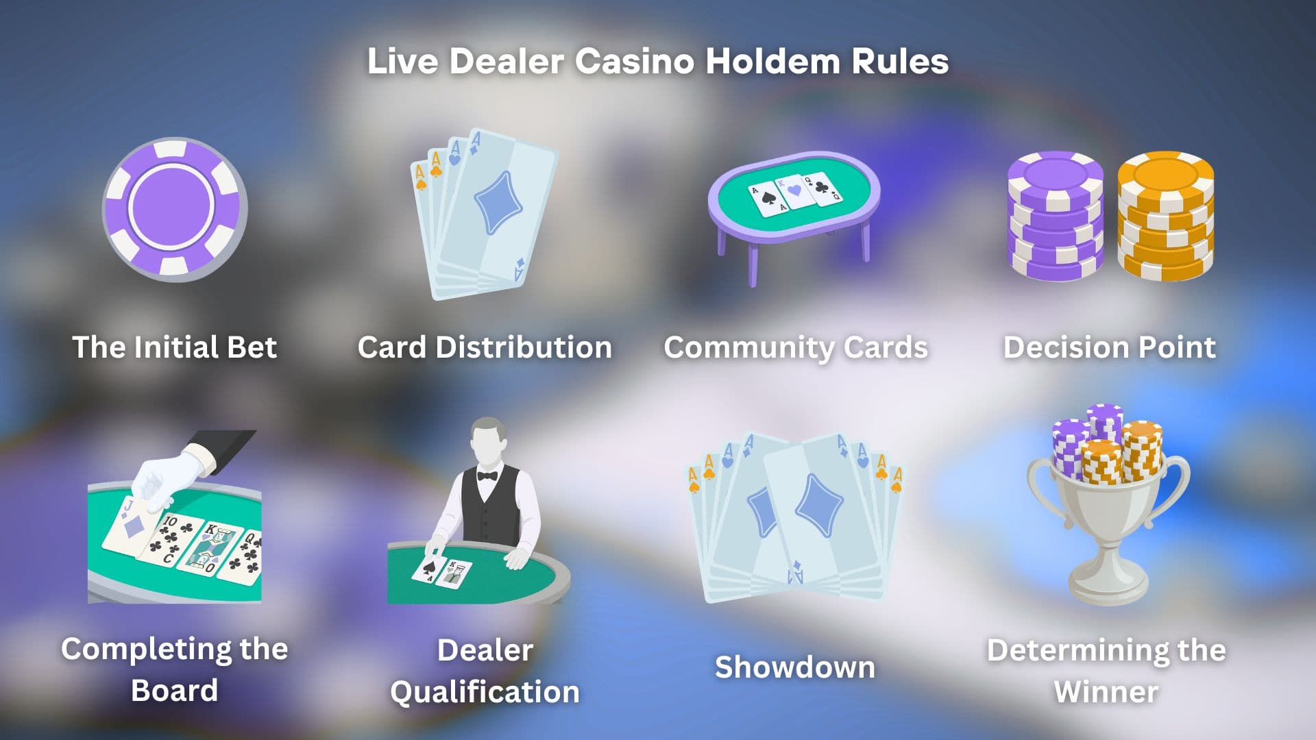 Casino Hold'em has a clear structure that makes it easy to pick up, but still offers plenty of strategic depth. Here's how a live dealer game typically plays out: